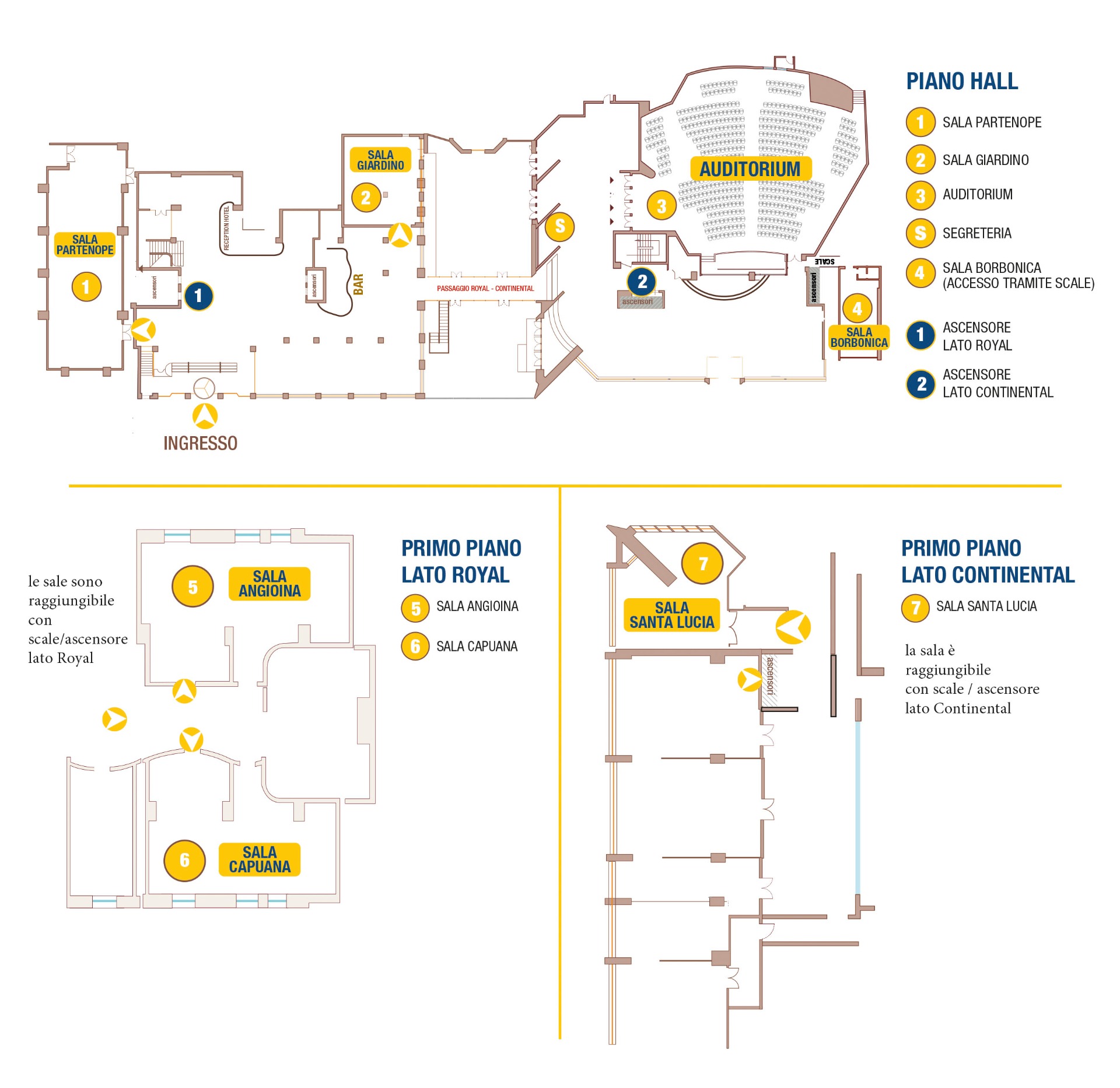 Le sale sono raggiungibili con ascensore/scale del lato Continental